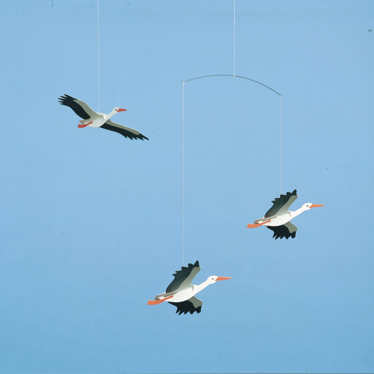 De mooie Gelukkige Ooievaars mobiel komt van Flensted mobiels en was de allereerste mobiel dat was door Christian Flensted was ontworpen. In 1953 sneed hij drie ooievaars in karton en het idee of een bedrijf in mobielen was geboren. De schattige ooievaars zijn zeer geschikt als cadeau voor de pasgeborene en wordt pas echt wonderbaarlijk boven het kinderbed of de kleedtafel!